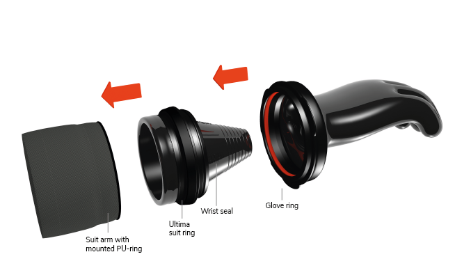 ISS Kompatibilität: Lässt sich direkt und ohne zusätzliche Adapter in Waterproof Anzüge mit Integrated Silicone Seals (ISS) einsetzen.