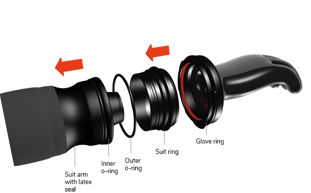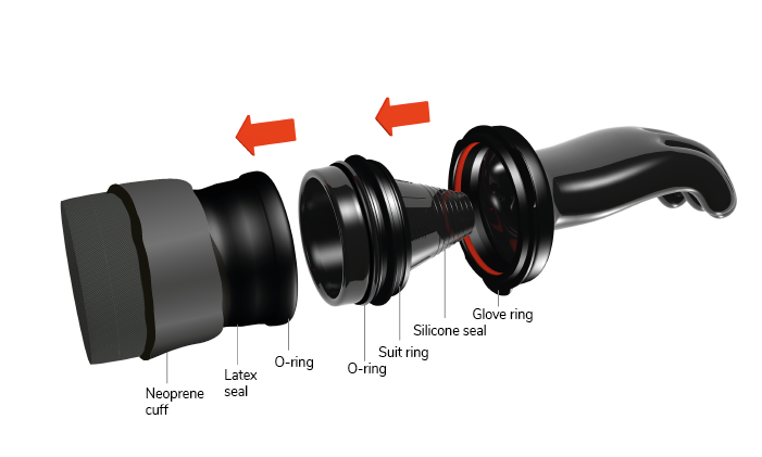 Lieferumfang: Das Set enthält zwei Anzugringe, zwei Handschuhringe, O-Ringe, Silikonfett und Montagewerkzeug. (Bitte beachte: Die eigentlichen Gummi-Trockentauchhandschuhe sind separat erhältlich, damit du genau deine präferierte Handschuhart wählen kannst).